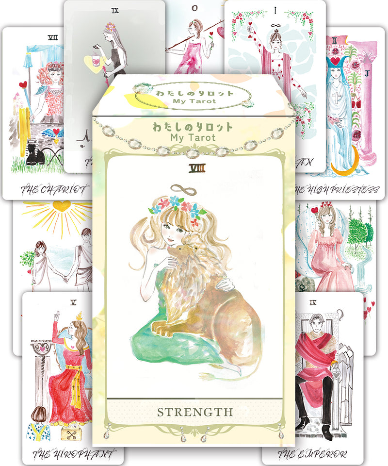 Based on the Rider-Waite Tarot, “Watashi no Tarot” (My Tarot) features artwork that is approachable and easy to use for everyone. With its soft and gentle watercolor touch, the cards create a world that feels soothing and healing just by looking at them.