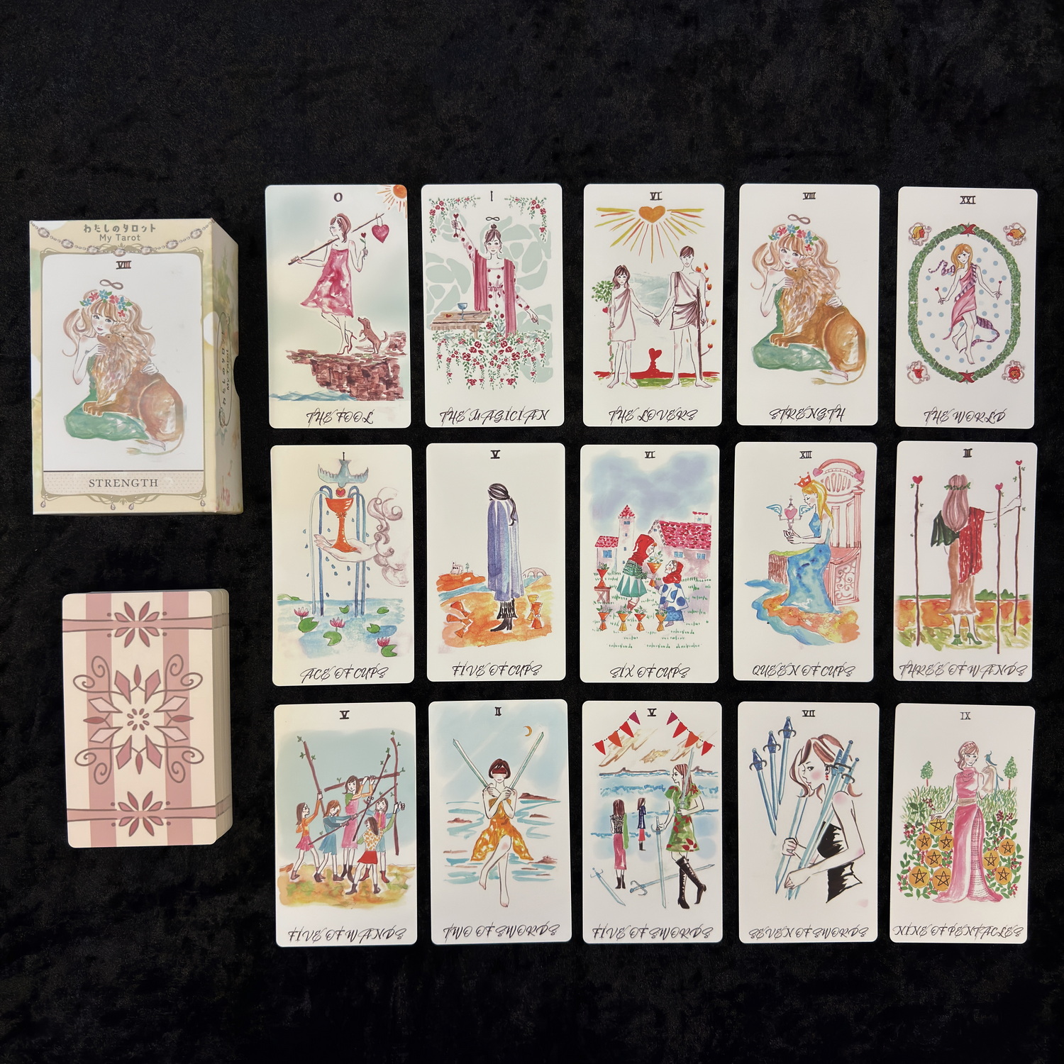 “My Tarot” enhances the foundation of the Rider-Waite deck with kindness, healing, warmth, and heartfelt artistry. It’s recommended for everyone: from seasoned tarot users, beginners just stepping into the tarot world, to collectors and fans alike. It’s especially perfect for those who have thought “tarot seems too difficult” or “the imagery feels a bit scary.” And if you’re searching for a meaningful gift for friends or family, this deck is an excellent choice.