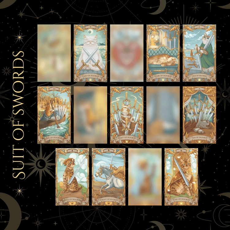 Enter the enchanting world of Nine Lives Cat Tarot and immerse yourself in the mesmerizing power of feline wisdom. This exquisite deck features beautiful artwork of cats, inspired by the traditional Rider-Waite Tarot, with each card offering a unique and enchanting interpretation of the tarot's timeless wisdom. The Nine Lives Cat Tarot comes packaged in a luxury magnetic box, providing a safe and stylish storage solution for your cards. Moreover, this divine deck includes a 170-page guidebook, filled with inspirational affirmations and profound upright and reversed interpretations of each card that will guide you in your daily life. Whether you're a seasoned spiritual seeker or a curious beginner, the Nine Lives Cat Tarot is a treasure that will unlock the mysteries of the universe and guide you towards self-discovery and transformation