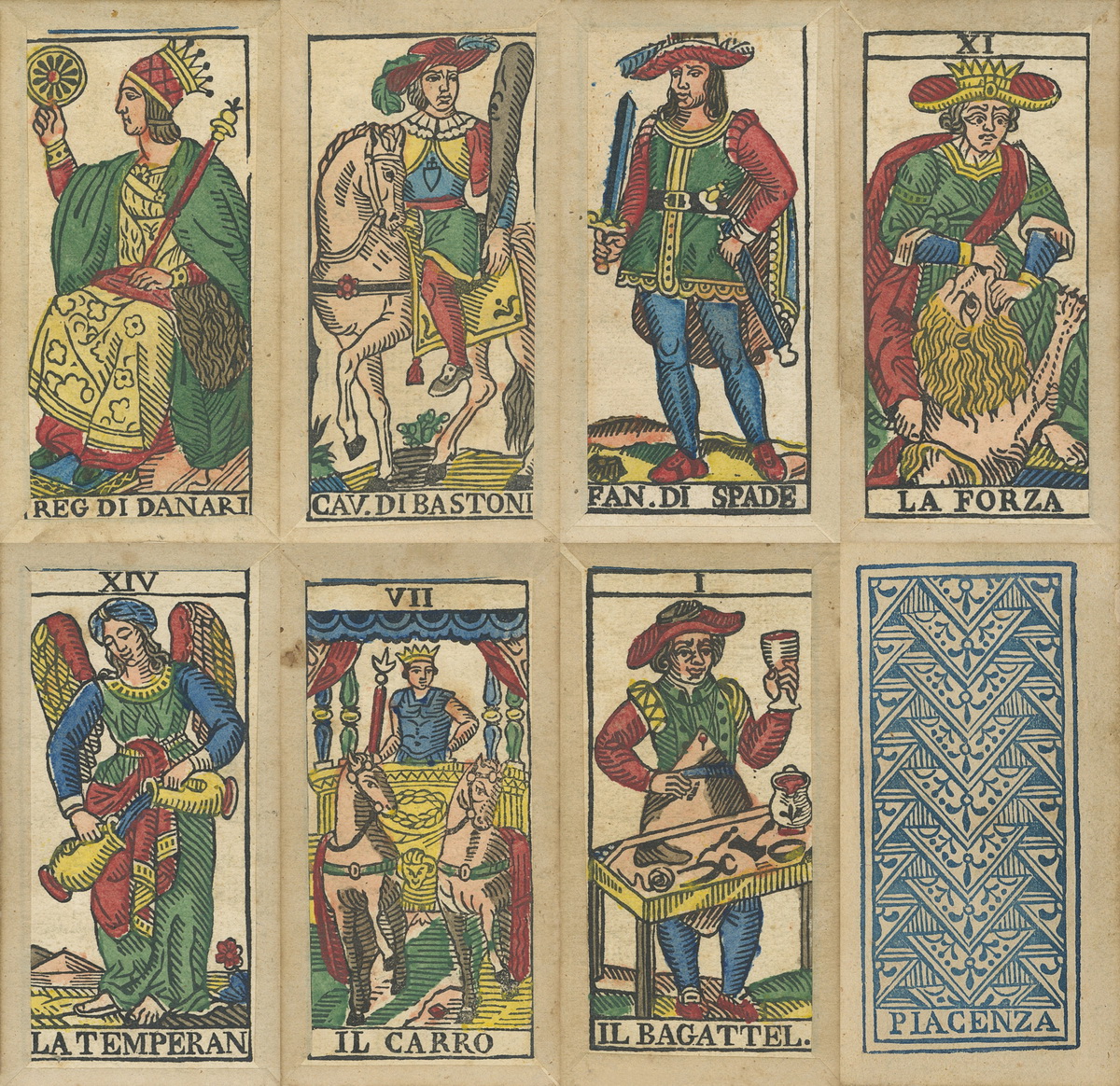 Exploring the history of Tarot, we can find some less known rare and exceptional masterpiece, such as the “Tarocchi Piacentini”. During the Spanish domination of Milan, the Italian Tarot tradition moved outside Lombardy, and placed seeds that grew up later in very beautiful Tarot like this one.