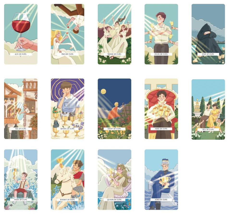 Imagine the Star card as a mischievous cloud winking at you, promising a night sparkling with possibilities. Or the Lovers as two fluffy cloud creatures cuddling under a rainbow, hinting at a day filled with connection. Even the trickier cards like Death become playful – a fluffy cloud shapeshifter shedding its old form, whispering about exciting transformations.