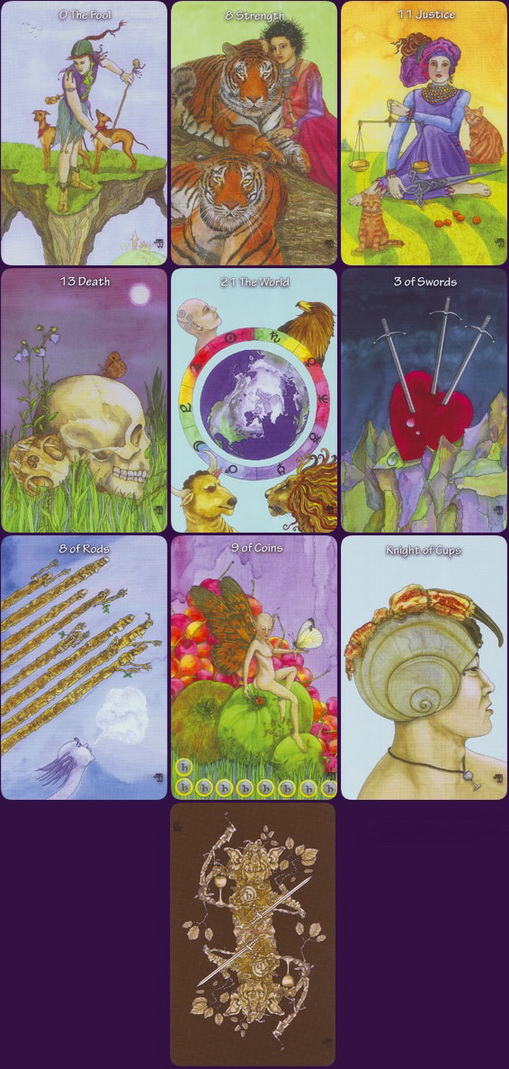 The Hezicos Tarot is an original fairy themed deck, which was hand-painted in soft but detailed water colours. The artist has followed the Rider-Waite tradition in order to make it easy for beginners. This beautiful, borderless, magical deck is now complete and available in a quality self-published edition with a bound 56-page book.