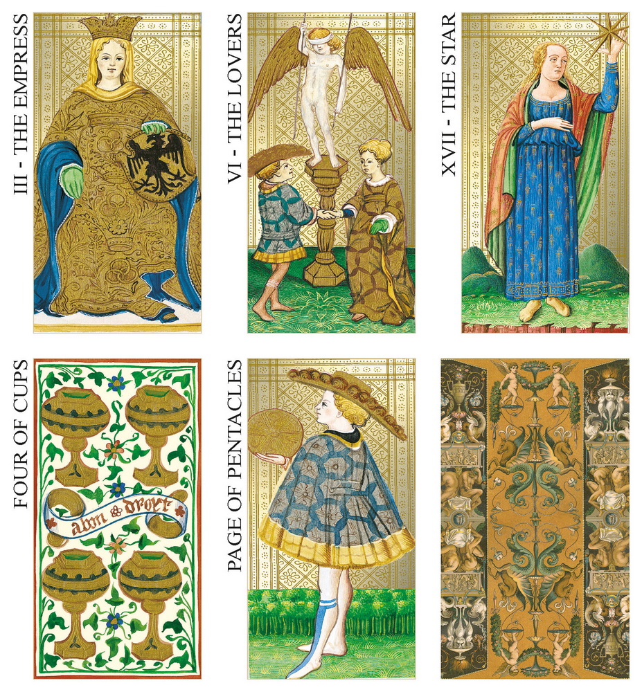 Now available as a mini deck! This deck is a stunning display of gold foil and exquisite Renaissance art that was commissioned in 1450 by the Duke of Milan and attributed to Bonifacio Bembo. This mini edition of the Visconti Tarot is printed on premium black-core cardstock.