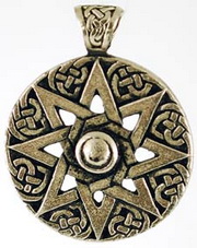 Dating back to 2000 BC, the eight-pointed star was discovered as a seal within the ruins of the ancient city of Ur. There it was the symbol of the Goddess Inanna, the Sumerian queen of the heavens, and later the symbol of Ishtar, who was revered in Babylon as the Light Bringer - with the eight pointed star, enclosed in a circle being the symbol of the sun god. As such it offers us a powerful, ancient connection to the Goddess and the light and warmth that she provides. This pewter amulet measures 1 1/8" in diameter and comes upon a 32" long black nylon cord
