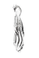 Dragon Love portrays an elegant dragon that is entwined around a milky crystal in an "expression of love for a brave and tranquil heart".
