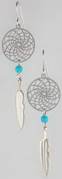Created in a wide variety of colors and styled in the manner of the dream catchers of Native American culture, these earrings have a body that resembles the traditional web woven to catch bad dreams, with dangling beads and feathers fluttering in the wind below. Hanging 2 1/2" long, they are a welcome addition to the collection of anyone who enjoy Native American jewelry.