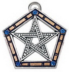 本產品需要付全數訂金訂貨,一般需時約 3-6 星期到貨。Referring to the five alphas formed by the Pentagram, and originating from Ancient Greece this unusual Pentagram was first worn by the followers of Pythagoras as a secret sign by which they could recognise each other. Its beautiful symmetry lends itself to acts of personal empowerment for harmony and stability.