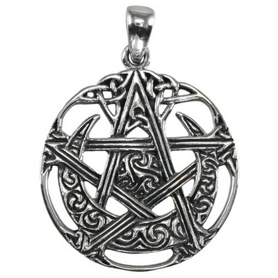 Sterling Silver Cut Out Moon Pentacle Pendant