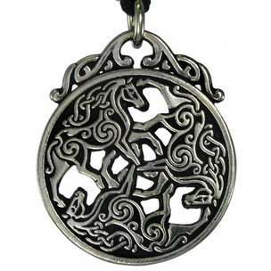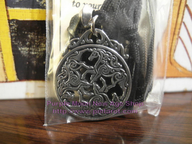 Throughout ancient times, the horse was the most Sacred and Honored of creatures. Thought to be a bridge between the material and spiritual world, the horse represents an intuitive bond between the two realms. The trust between the rider and horse was considered a divine marriage, and it was common to let the horse wander freely, leading the rider to adventure of Destiny. The threefold images of the horse symbolize different aspects of belief revered throughout the Celtic tribes.