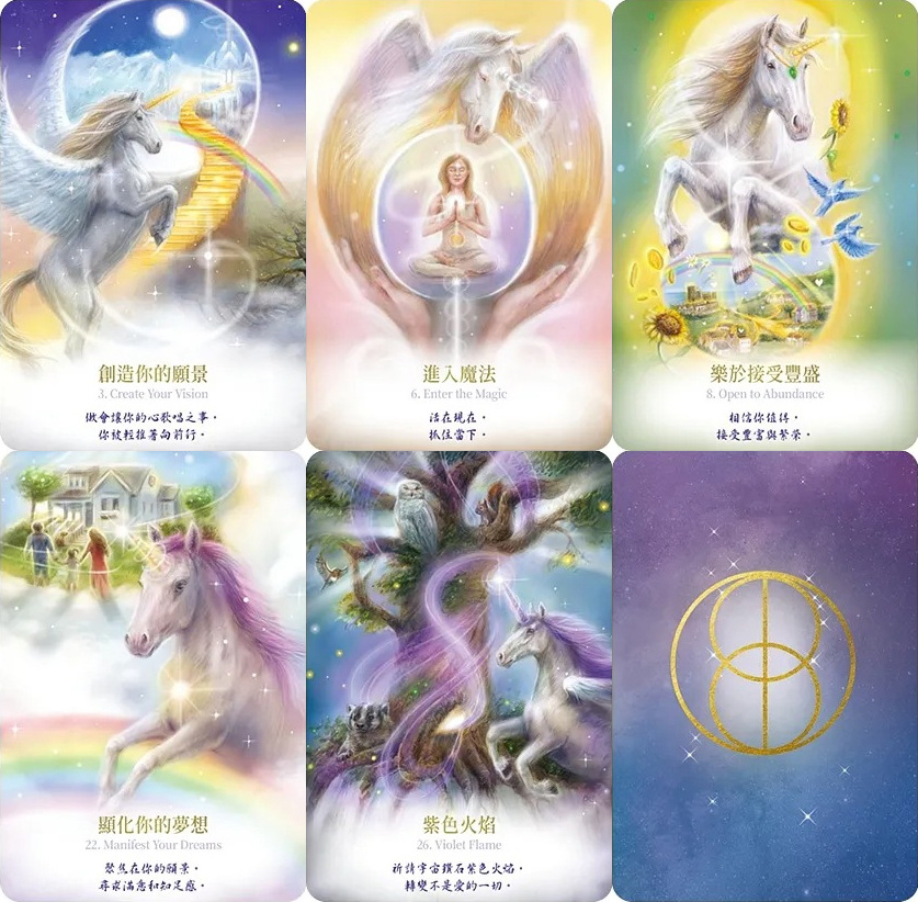 獨角獸是高頻率的純白能量,當祂以其光之犄角觸碰你,便能在靈魂層次療癒、祝福、轉化你。而每個人都有專屬的個人獨角獸,當你使用這套牌卡,便會自動與其連結。