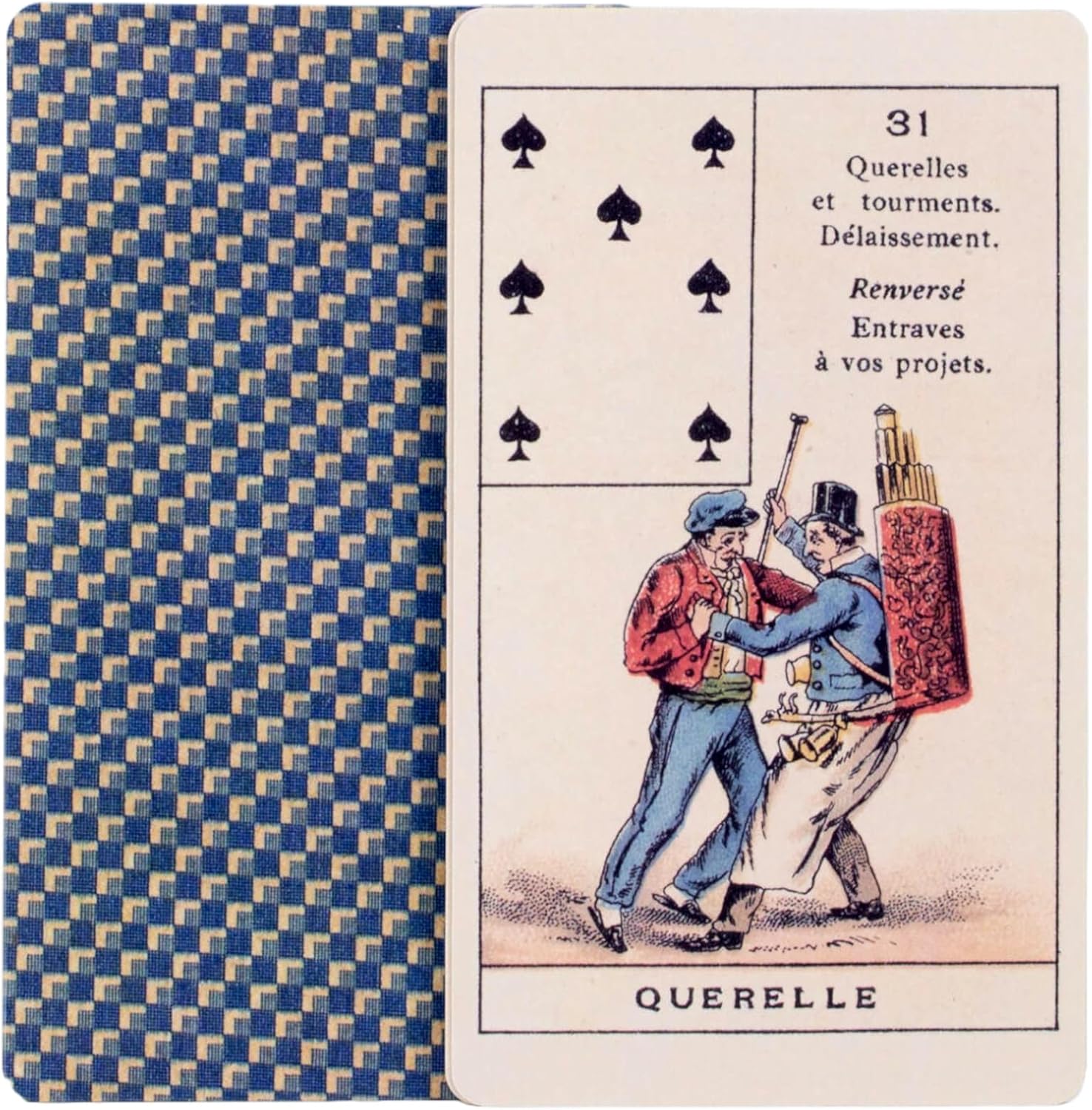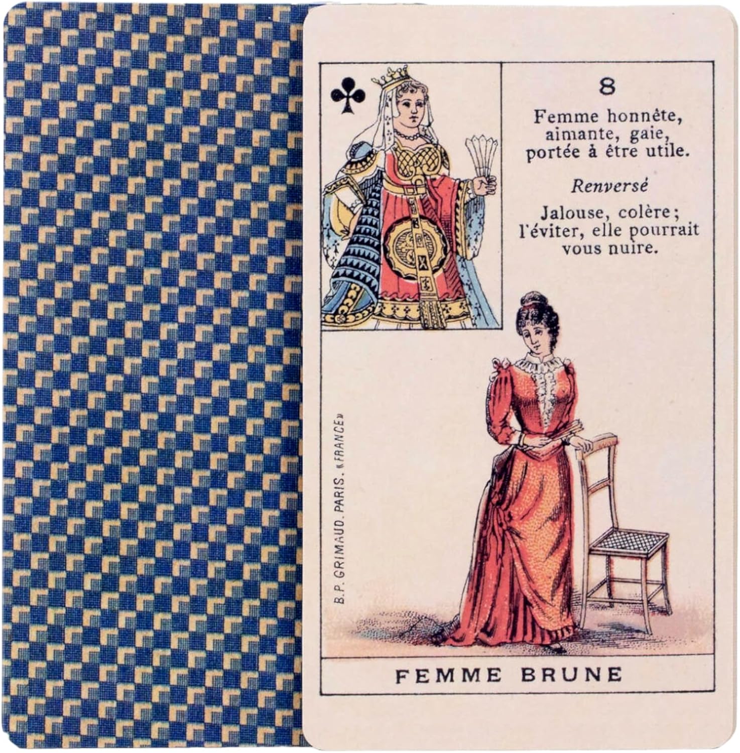 First published in 1875, this deck was used by socialites in French salons to navigate the complex and dramatic issues present in the haughty social circles of high class Parisians.