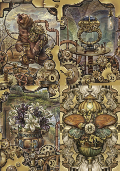 A brilliant new reading deck featuring all the brass clockworks, outfits, and accoutrements that fans of this style have grown to love. Designed as a more detailed view of the traditional Lenormand themes and symbols, the Steampunk Lenormand ups the ante with romance and intrigue spinning around human happenstances and elations. These feelings and insights bursting forth from these cards evoke a sense that you're on a grand adventure, joining in the human struggle against ordinary challenges as you reach out to achieve your own version of happiness and success.