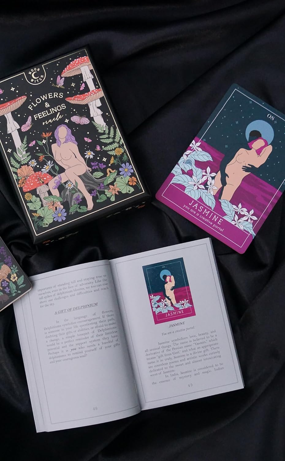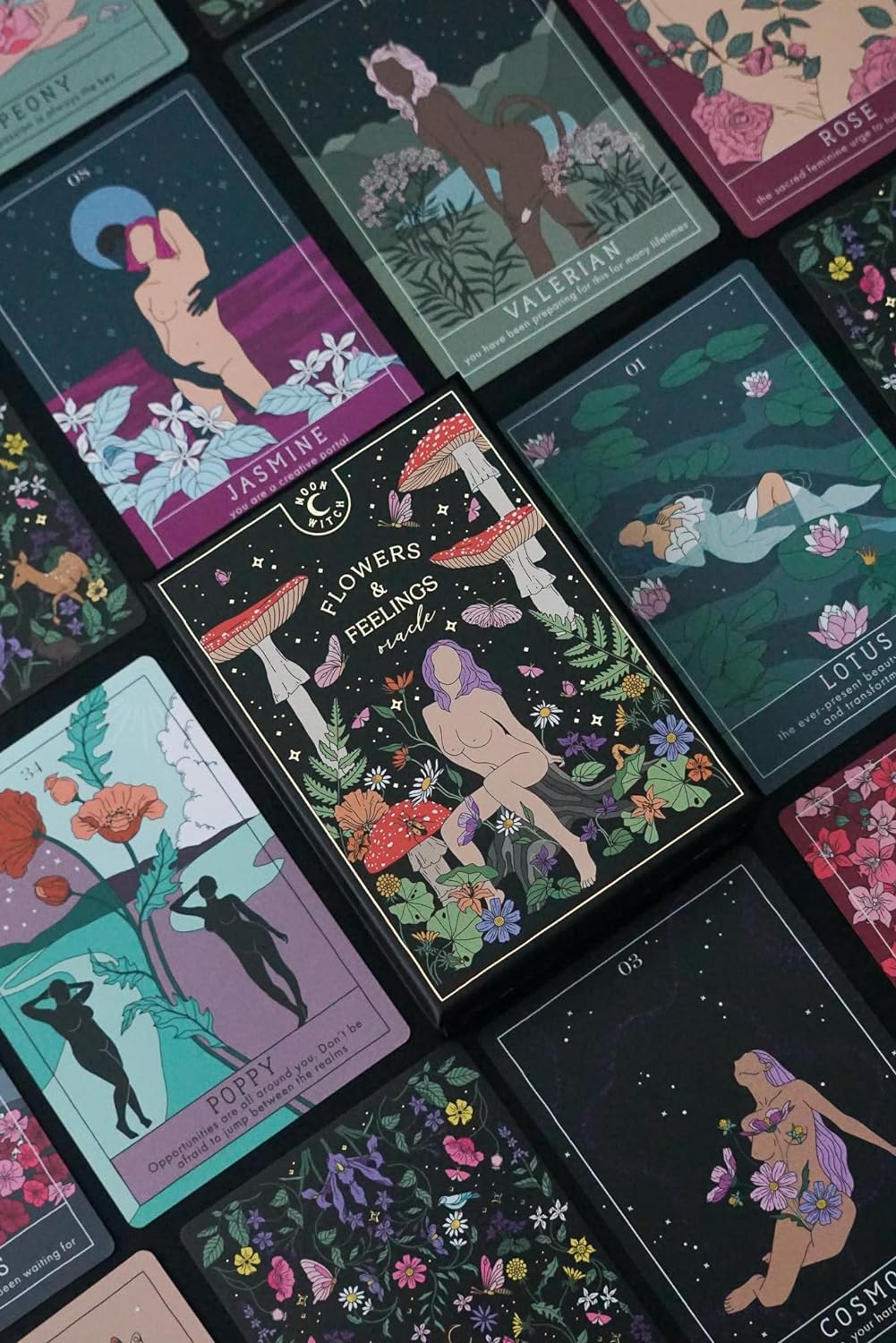 本產品需要付全數訂金訂貨,一般需時約 2-4 星期到貨。Moon Witch series presents a new oracle deck - Flowers and Feelings! Immerse yourself in a magical world of flowers and plants, where beauty, wisdom, and history all intertwine. Created in a garden, Flowers and Feelings Oracle Deck was inspired by legends across the world and the profound knowledge found within the petals, stems, and hearts of nature’s most delicate creations. Flowers and Feelings is not your traditional oracle deck. Despite the name, this deck features not only flowers, but trees, herbs, mushrooms, and goddesses of flowers and spring. Every card, flower, tree, and herb is not only here to provide guidance, but to inspire you to go outside; get to know every single bush, tree, and flower of your neighborhood, as well as the forest around; tap into your ancestral knowledge; recognize plants as your allies; and so much more. As you shuffle the deck, you will find yourself transported to gardens, jungles, and enchanted forests, where each flower and card become a mirror, reflecting parts of your consciousness back to you. Whether used as a tool for daily guidance or as a source of inspiration, Flowers and Feelings Oracle Deck offers a unique way to tap into your inner wisdom. It serves as a reminder of the ever-present beauty of growth and transformation, and nature’s unfailing ability to soothe our aching hearts.
