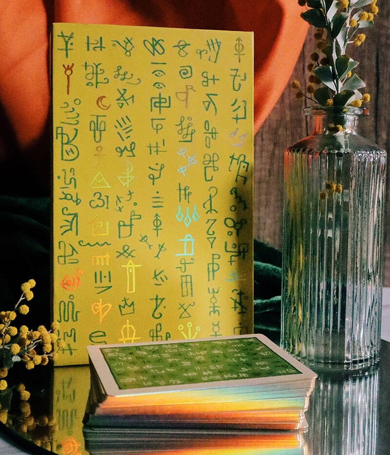 In this updated version of Green Glyphs Lenormand (originally published in 2019), the box, card finish and gilding have been improved! -James