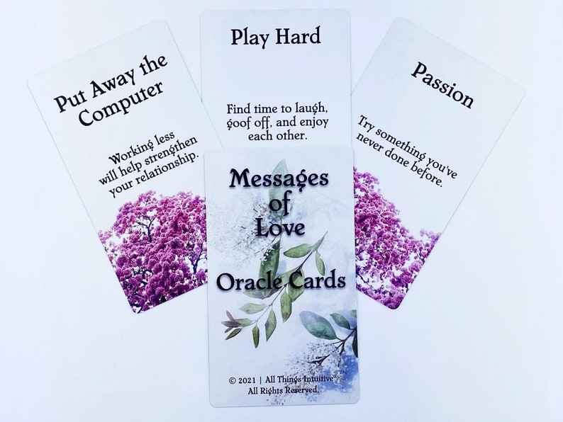 The 54-card Messages of Love, our bestselling candid romance oracle deck, answers your questions about love, sex, twin flames, soulmates, past-life connections, and much more. This deck is designed for any type of relationship, as are all of our decks.