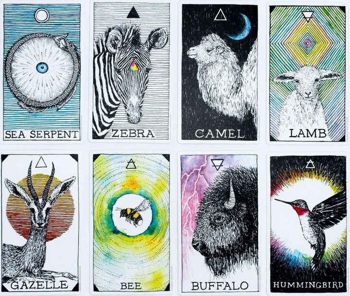 The Wild Unknown Animal Spirit Deck offers insight into relationships, personalities, behaviors, and tendencies through the animal spirits that animate the forests, deserts, oceans and air all around us. Divided into five elemental suits of Earth, Air, Fire, Water and Ether, these 63 vibrant heavy-stock cards are hand-drawn by artist Kim Krans and can be used alongside The Wild Unknown Tarot to add an additional layer of depth to readings. Each deck includes a fold-out poster and starter guide depicting spreads and meanings, and comes housed in a sturdy iridescent box with grey lifting ribbon. May your mind stay open and your wings span wide... and have fun on your journey.