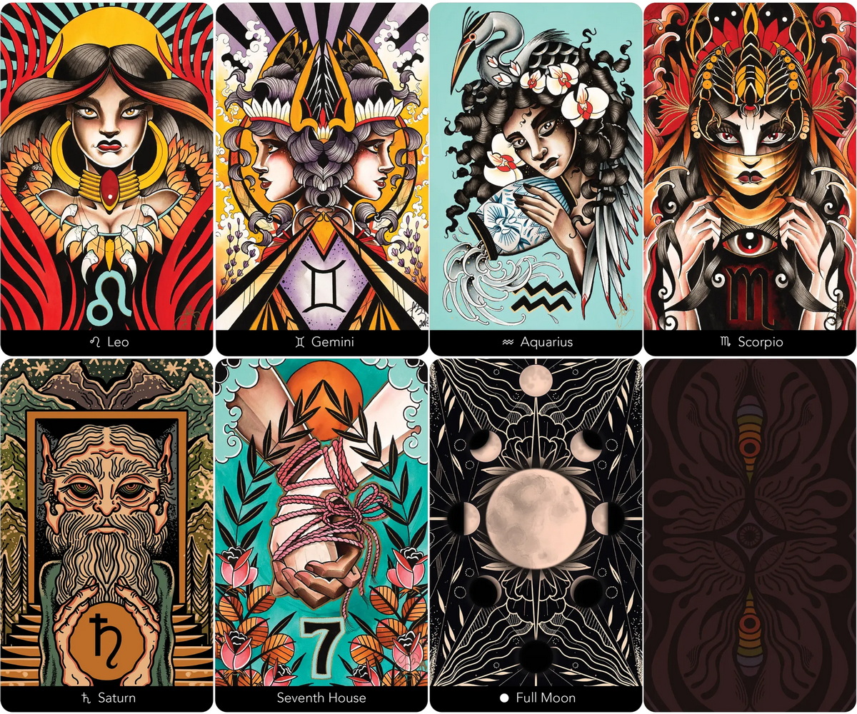 本產品需要付全數訂金訂貨,一般需時約 3 - 10 星期到貨。Connect with the timeless wisdom of the zodiac signs, astrological houses, planets, and moon phases with Eight Coins’ Astrology Oracle. Inspired by the celestial archetypes and cosmic energies that govern our world, these 41 cards with black painted edges deliver insights that can be applied to your daily life. Each card’s vibrant artwork was channeled through meditation and created using a blend of hand-painted and digital techniques by tarot and tattoo artist Eight Elian-James Showell. The 132-page guidebook presents full-color, enlarged illustrations for each card, along with descriptions and unique divinational messages to guide the reader through their own life changes.