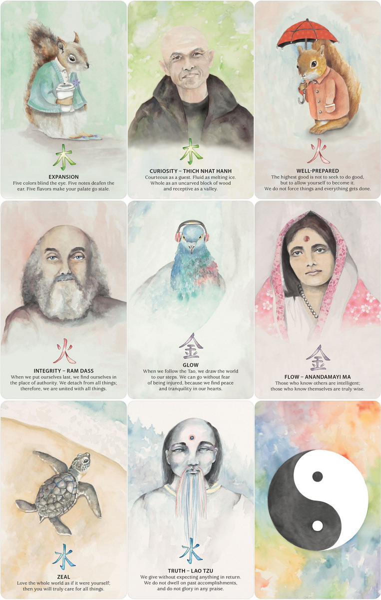 With inspiration from Lao Tzu’s Tao Te Ching, Nature Quest Oracle invites you on a journey to manifest a mindful life in harmony with nature. Prominent sages (Thich Nhat Hahn, Ram Dass, Ramana Maharshi and Anandamayi Ma) share insights that are in alignment with Taoist philosophy to make the teachings of the Tao accessible and relevant to your daily life. This 50-card deck features charming watercolor art and is organized around the five elements. Includes 132-page full-color guidebook.
