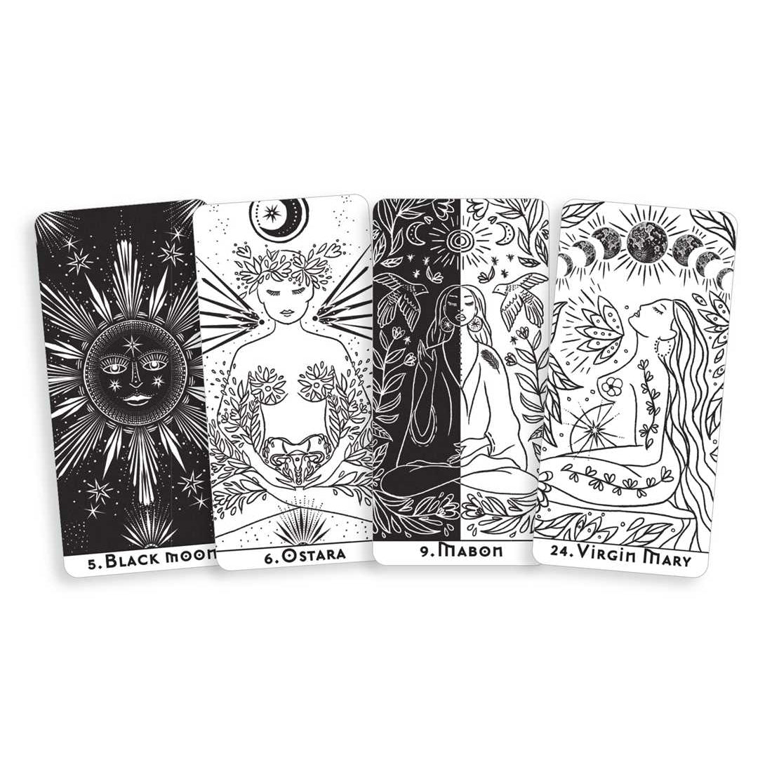 These 33 customizable, black-and-white oracle cards are made out of sturdy matte paper, perfect for coloring with pens, colored pencils, markers, and more. Once you personalize this deck with creative colors and designs, use the one-of-a-kind oracle cards to discover the divine guidance you need for improving your health, happiness, relationships, and life.