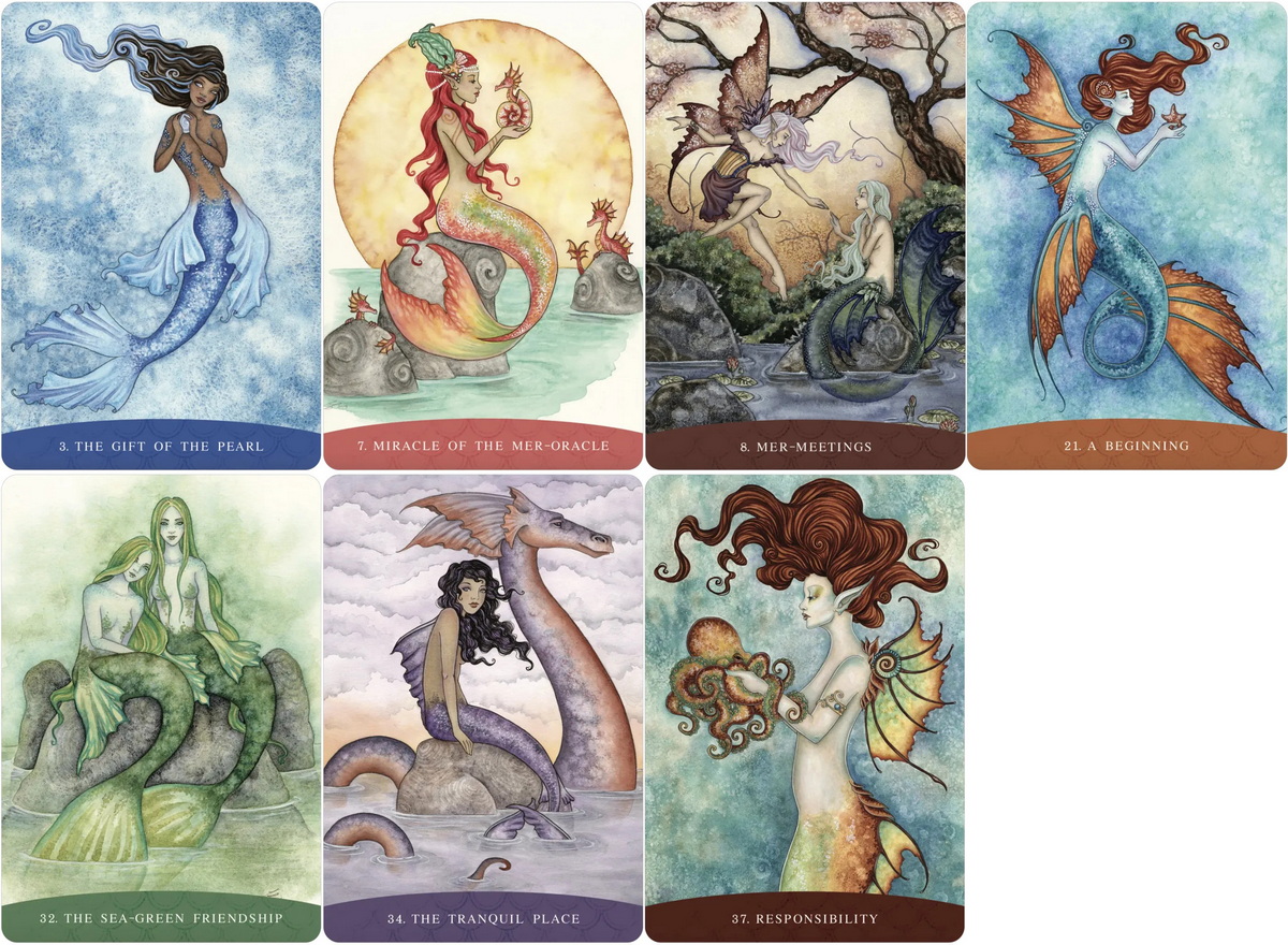 Both in stillness, and when we feel the pull of life’s currents, we can know and remember the ways and wisdoms of our mer-selves. These treasures are never far from reach and with this alluring oracle, you can rediscover and dive deeply into their healing magic. Explore the symbology, mystery and deities of the sea and enhance your readings with mermaid tools, insights, prophecies and offerings. Bring your questions to the Sisters of the Sea and be guided by their divine visions of past, present, and future. Connecting with the mermaids is deeply soothing. Their tranquil presence gifts our perception, imagination, and illumination space to grow and be realized. — Lucy Cavendish