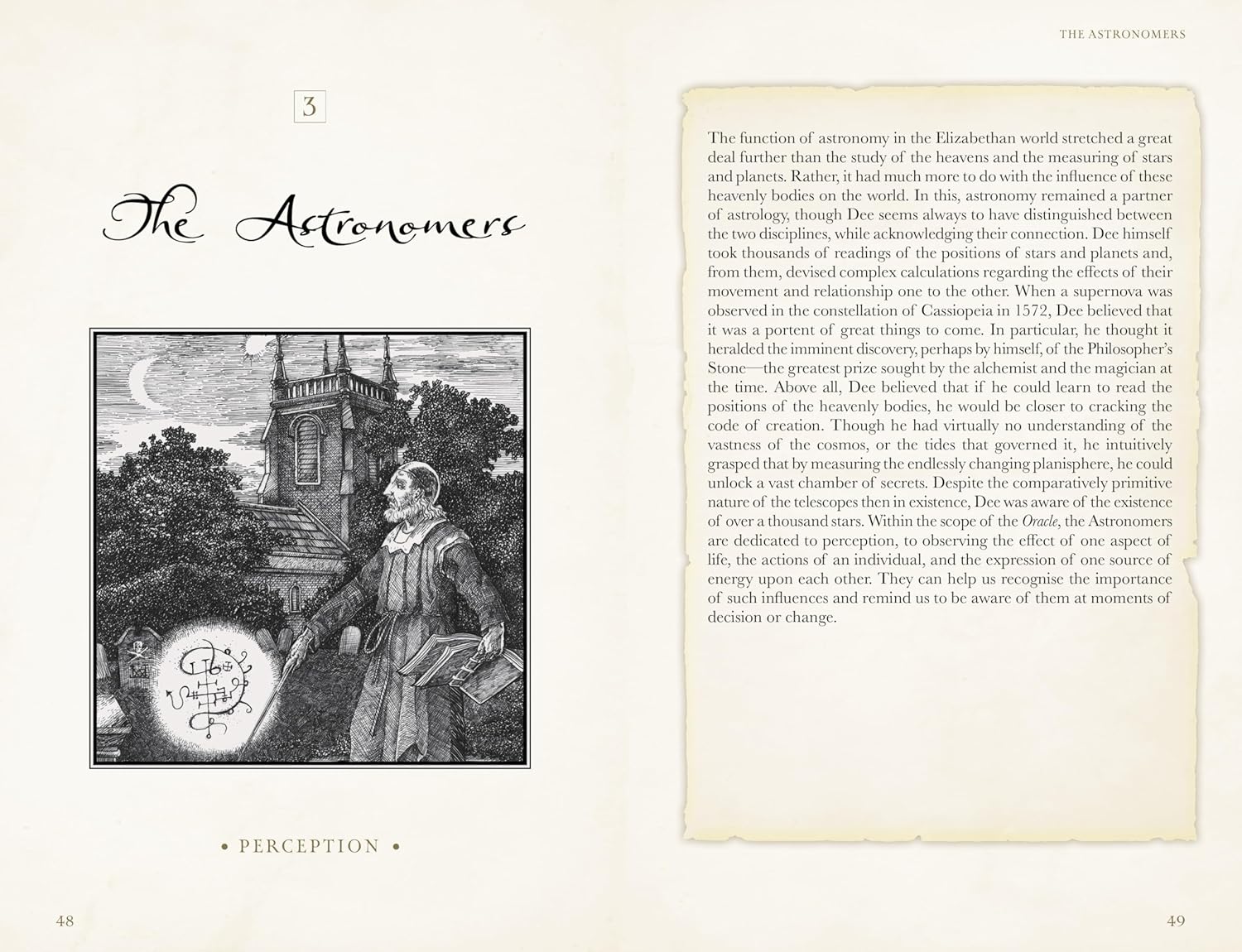 The John Dee Oracle draws from the visionary work of Dr. John Dee, the renowned philosopher, astrologer, and magus who stood at the crossroads of science and magic during the reign of Queen Elizabeth I. This oracle, created by John Matthews and brought to life through the exquisite artwork of Wil Kinghan, offers seekers a chance to walk in the footsteps of one of history’s most enigmatic figures, delving into the wisdom Dee pursued throughout his lifetime.