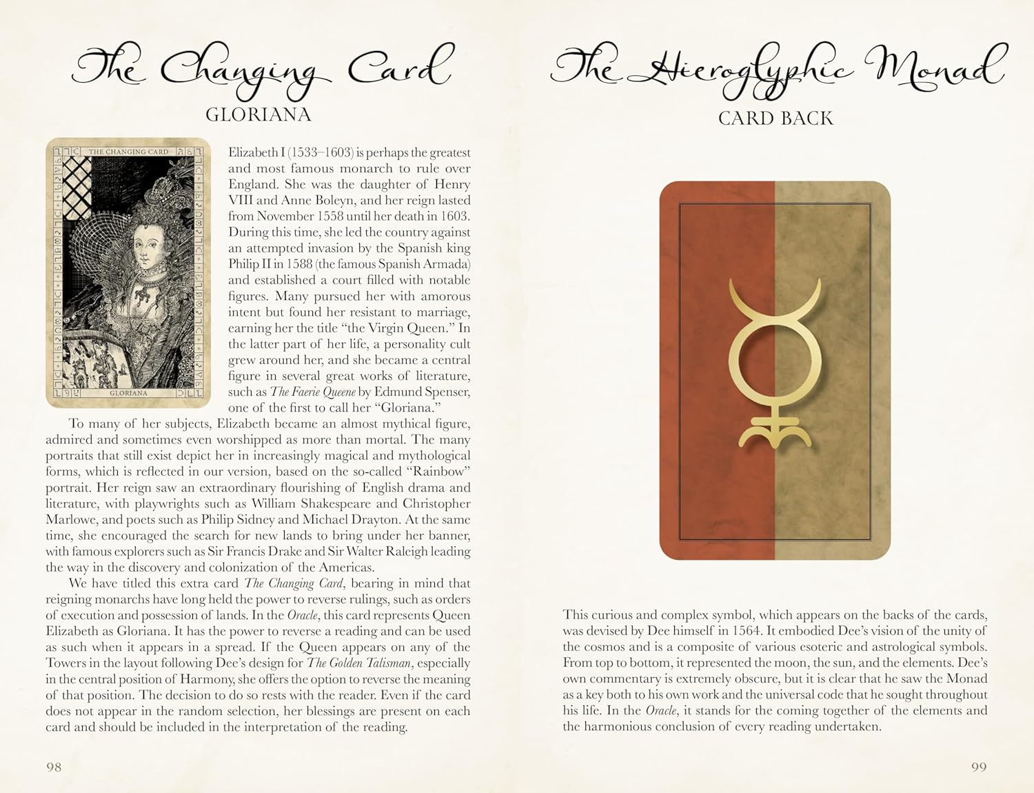 - an added Gloriana card, which honors Dee’s great patroness, Queen Elizabeth I