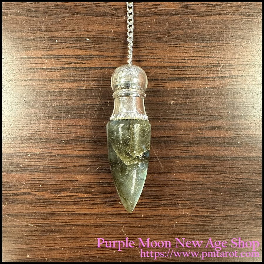 This Labradorite crystal pendulum features a chamber within allowing you to fill it with spell oil, crystal chips, herb, ash or dirt, or any magical aid for your divination and dowsing.