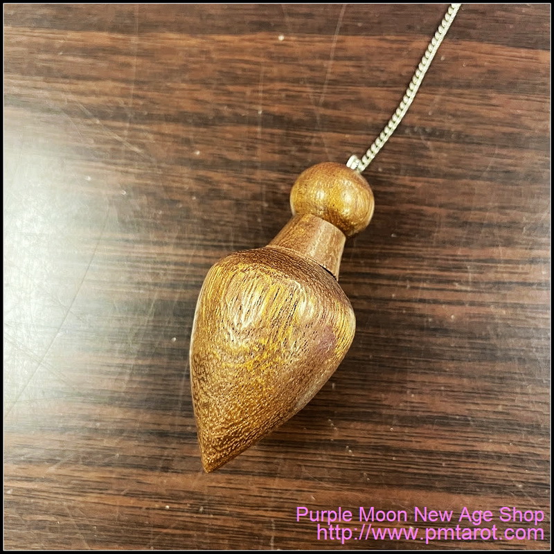 A simple piece of lathed wood turned into a pendulum bob with a hidden chamber large enough for a few drops of oil, some ground herb, a small crystal, etc.