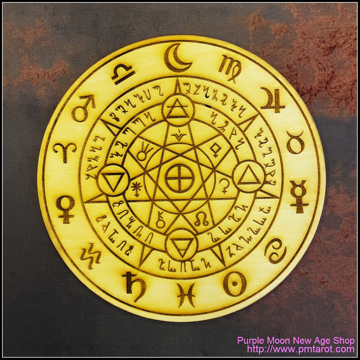 Wiccan symbol of protection from evil spirits and demons wooden plate