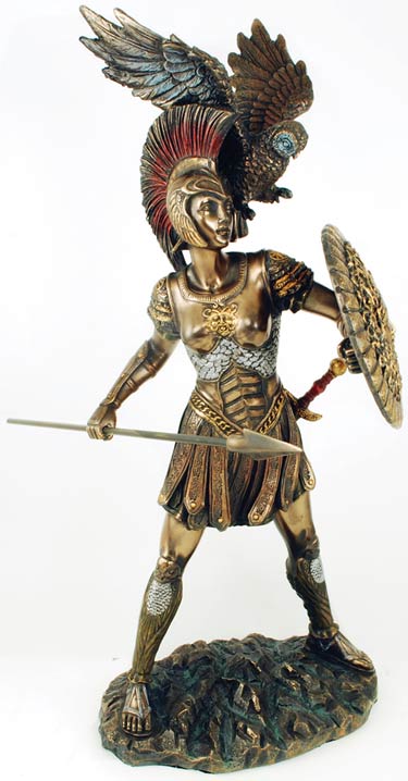 本產品需要付全數訂金訂貨,一般需時約 4-8 星期到貨。This beautiful statue portrays Athena, the goddess of wisdom and war, as though she were sculpted of bronze, armored as a hoplite warrior with the owl of wisdom landing upon her shoulder.