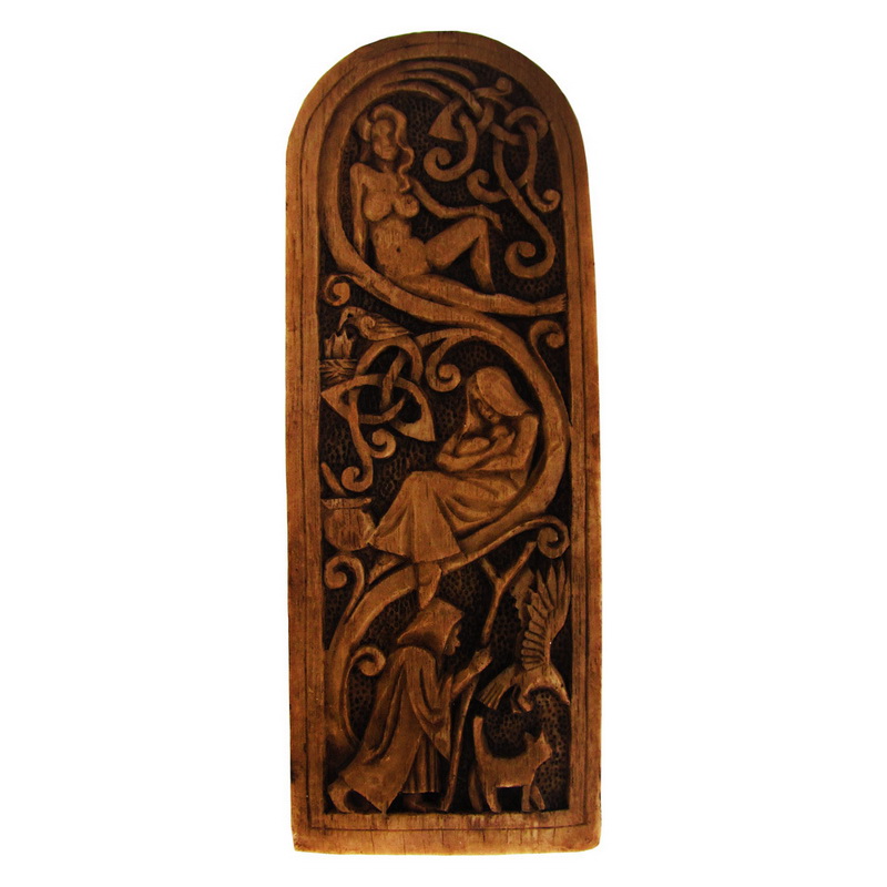 本產品需要付全數訂金訂貨,一般需時約 4-8 星期到貨。The Lunar Goddess sits on her throne, which is graced with the phases of the moon. She is crowned with the horned crescent. In her lap she cradles a scrying bowl representing receptivity, intuition and the magical womb of transformation. On her right side a rabbit looks on, her emblem of life, fertility, and beginnings. On her left the crow cries out as her messenger, symbolic of the waning years of life and the ultimate passing from this life into the next. The back of her throne depicts the Goddess in her three aspects as Maid, Mother, and Crone.