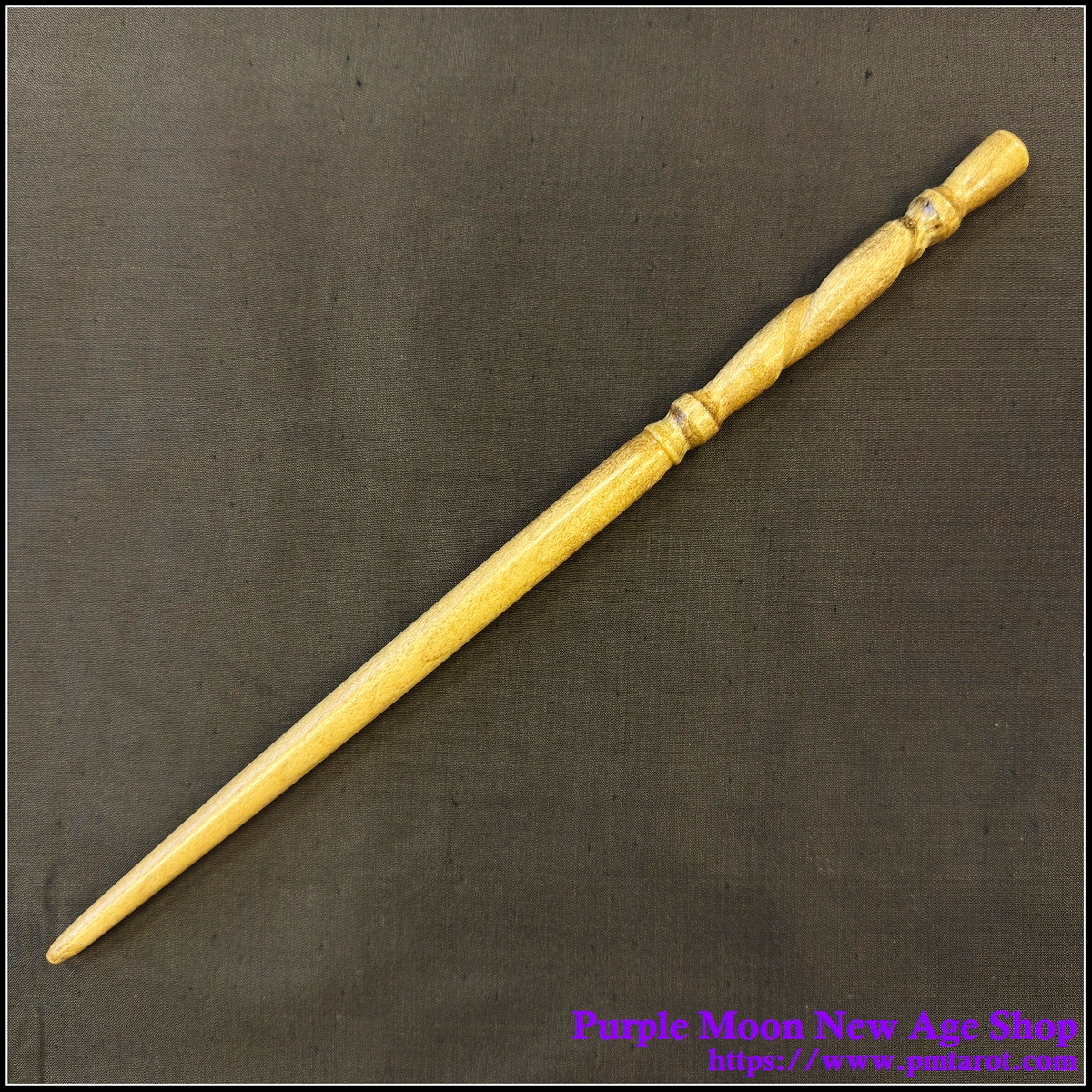 This wand is made from one piece of Birch, making it nice and sturdy for years of spellcasting. The handle has been given a solid dark stain; the tip has had the stain rubbed off, leaving the grain to show through.