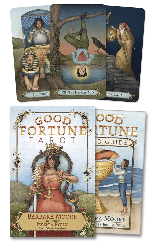 Jessica Roux's decadent illustrations bring new light to familiar symbolism and bestselling author Barbara Moore teaches you how to squeeze every drop of fortune out of even the direst situations. Featuring a sassy foreword by a fictional character who inspires daring souls like you, Good Fortune Tarot illuminates the road ahead so fate can't catch you off guard.