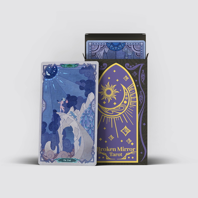 每張卡片都被設計成透過破碎的水銀鏡看到的圖像,因此具有復古的表達方式。 這也解釋了線條和幾何圖案的相互作用,將畫布分割成馬賽克。 首次採用特殊的印刷工藝來傳達作者關於將內心的自我與外部世界聯繫起來的信息,這就像鏡子的兩側。