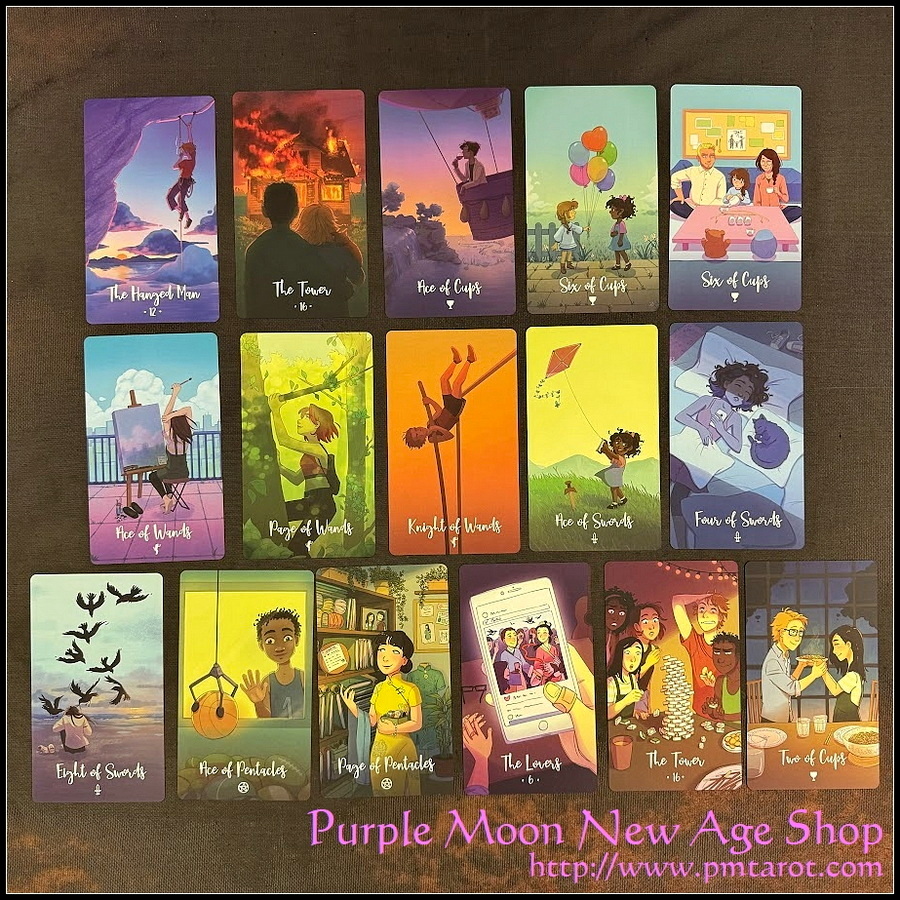 Cosmic Cycles Tarot 是一套講故事的塔羅牌,其中有來自現代社會的相關人物。 跟隨 權仗侍從抵達這座新城市,在那裡她將結識新朋友和熟人。