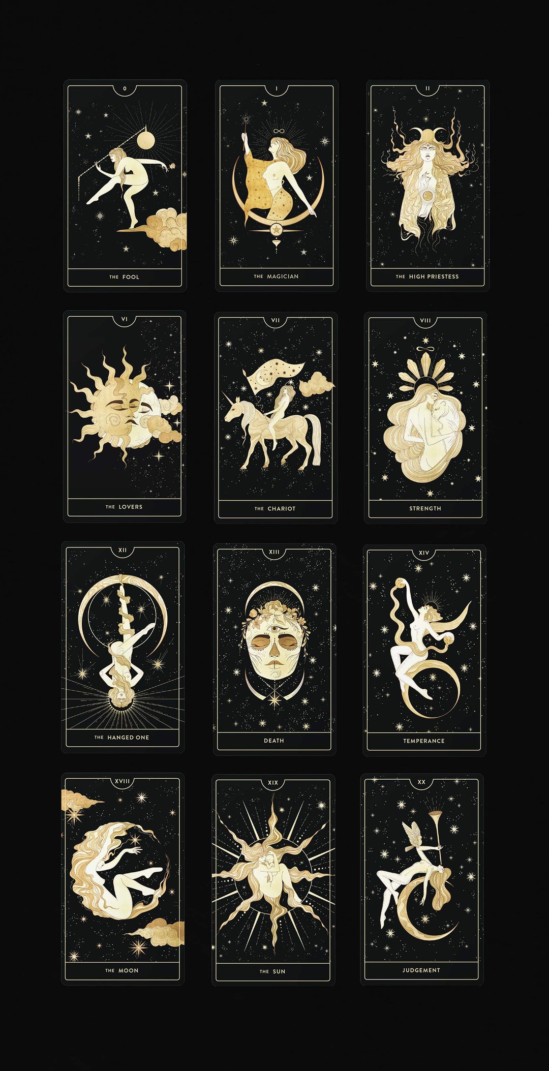 以宇宙女神故事風格創作來慶祝女性的存在,全牌卡只有女性形象。以黑夜之中的金色線條,時尚筆觸勾勒出不同女性的姿態與美貌,結合在神話預言中的傳說,將每一位女性所孕涵的能量呈現在塔羅牌卡之中,運用肢體的樣貌如同現代舞的表現一般,將傳統的偉特塔羅牌重新演繹,詮釋著每一張塔羅牌的意義,人生就是一場個人自我的大秀,不同的決定將為生命拉開不一樣的序幕,也能在當中體會喜怒哀樂、悲歡離合!