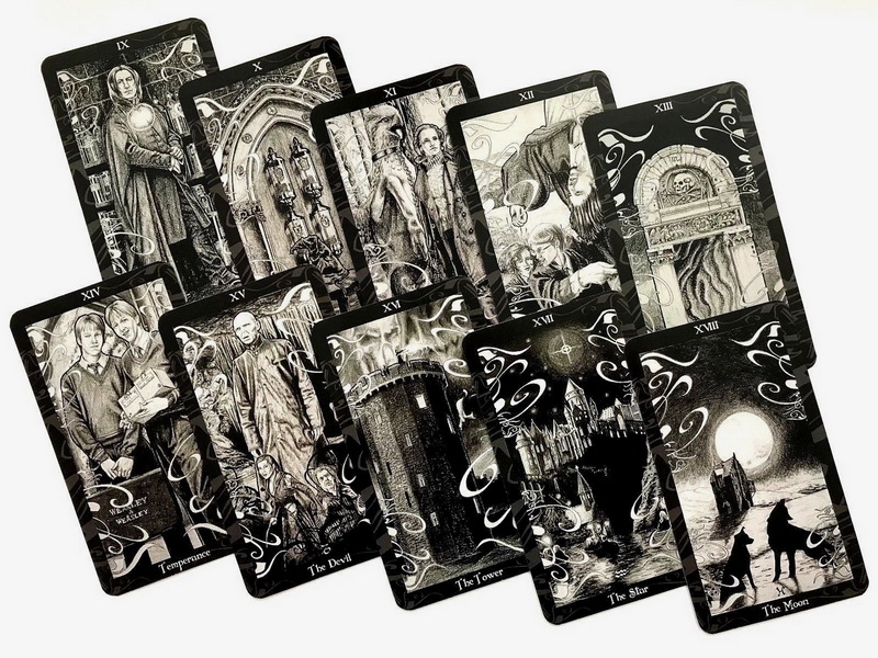 The cards are printed on heavy, satinated cardstock that's as good as any regular deck (330 gsm). Comes with a signed cover card in a black velvet pouch. No outter box & packaging.