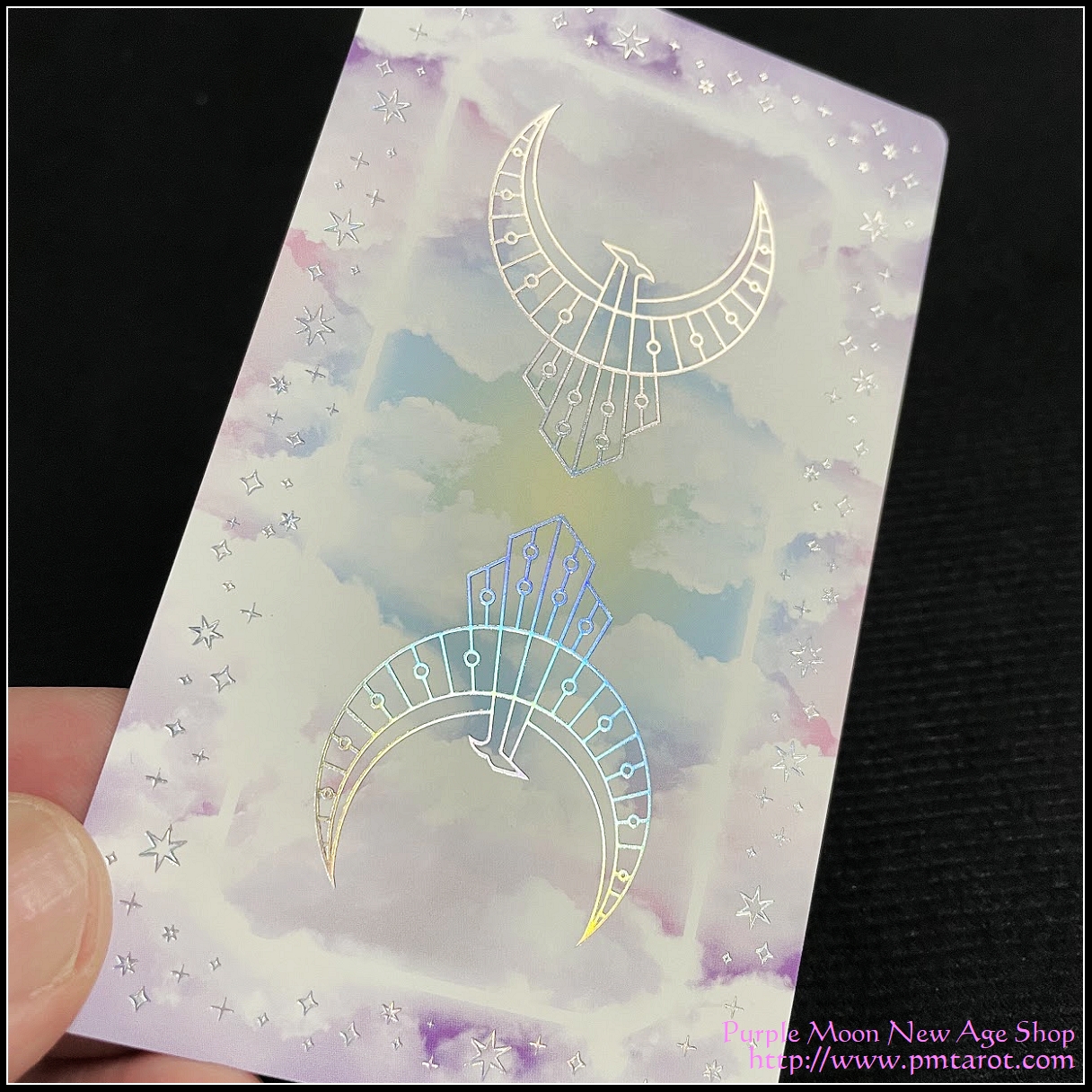 帶有全息閃光箔邊的亞光塗層 350GSM 卡片紙 (邊緣可能會損壞,請小心保存及使用)用 HOLOGRAPHIC FOIL 沖壓生產。