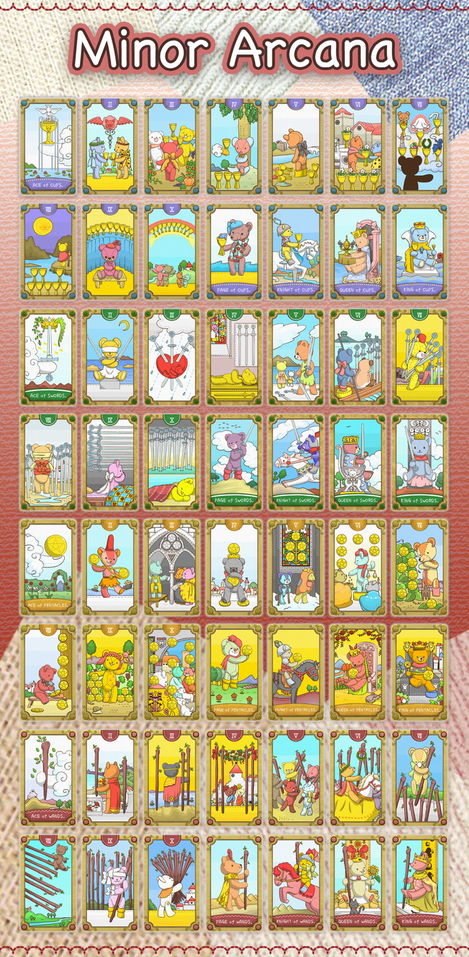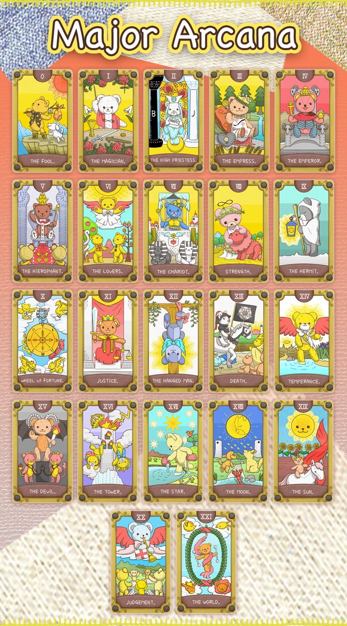 Although it is based on the Rider Tarot deck, there are no frightening or harsh pictures in that world. Just gazing at the adorable teddy bears on the tarot to soothe your soul.