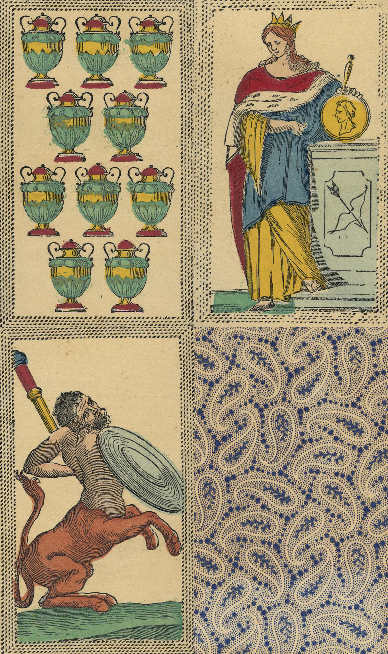 Dating back to fifteenth-century Florence, the Minchiate is a fascinating form of tarot. Composed of 97 cards instead of the usual 78, this historic deck, originally printed around 1860, features an expanded set of major arcana.