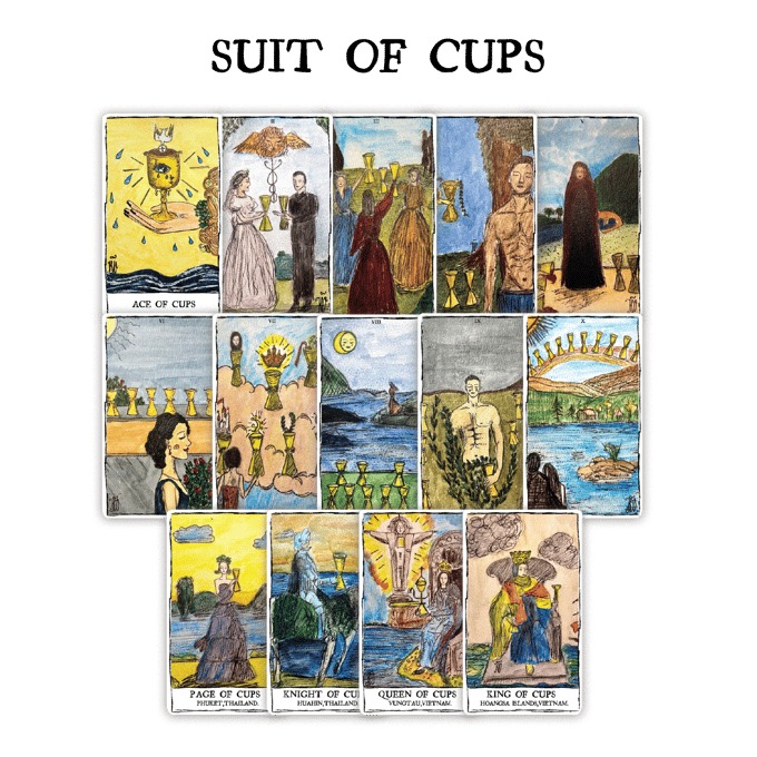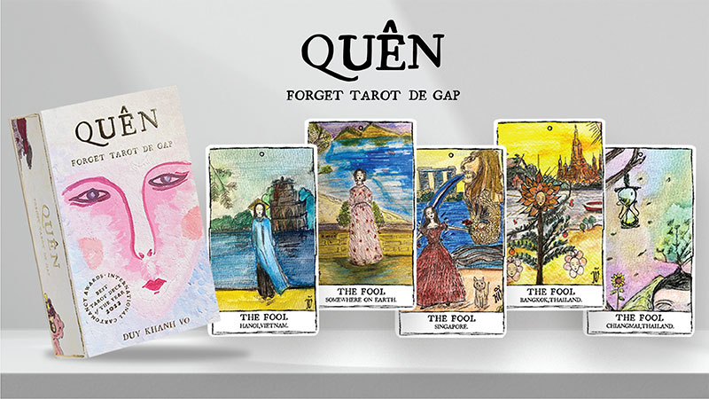 Quen Tarot being his sixth creation. Going beyond the classic RWS inspirations, Khanh weaves both tangible experiences and imaginative tales to create the enchanting allure of the Quen deck.