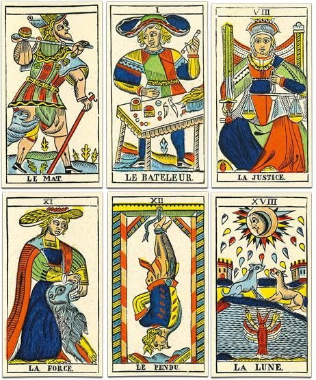A Tarot de Marseille Type II, but with some very special cards such as Le Pendu and Le Diable