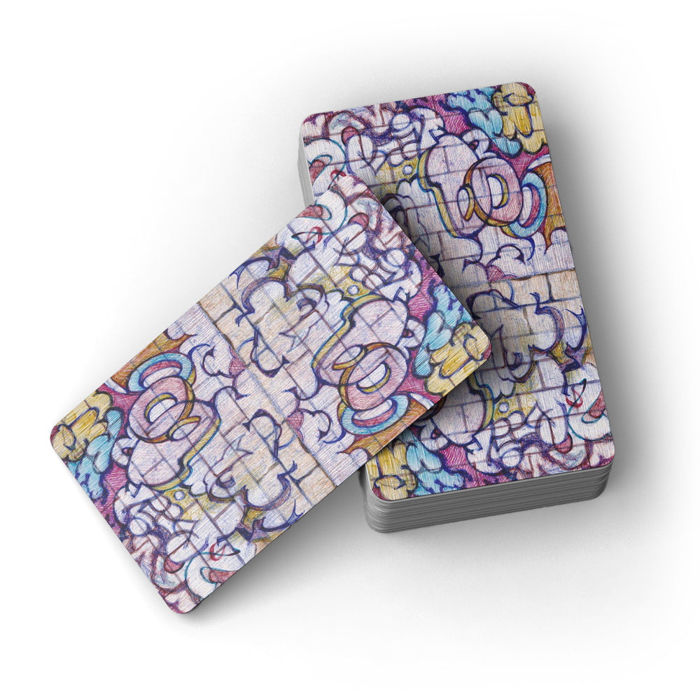 The deck characters are also very different − a homeless man by a fire, a punk with a bottle of beer, a mother with children, a bank employee, a builder, an artist, an architect, a policeman, and others. The various people inhabit the city − rich and poor, happy and unhappy, workaholics and slackers.