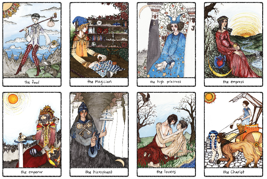 The Efflorescent(形容詞:綻放花朵)塔羅牌歷時兩年(2009 年至 2011 年)製作而成,是一套功能齊全的牌組,以 Rider-Waite 傳統進行闡釋。這套牌由存在於他們自己的世界中的人物、物體和地點組成,是對原型和超越人格的實體的檢驗。這些紙牌之所以強大,是因為它們成為人類戲劇的參與者。它們是個人真相的觸發因素。與所有神話和寓言一樣,這些卡牌在現實世界和室內景觀之間提供了一個邊緣空間。它們成為愛、失去、艱辛、回報的寓言;它們讓人們在符號和故事中看到自己的道路。