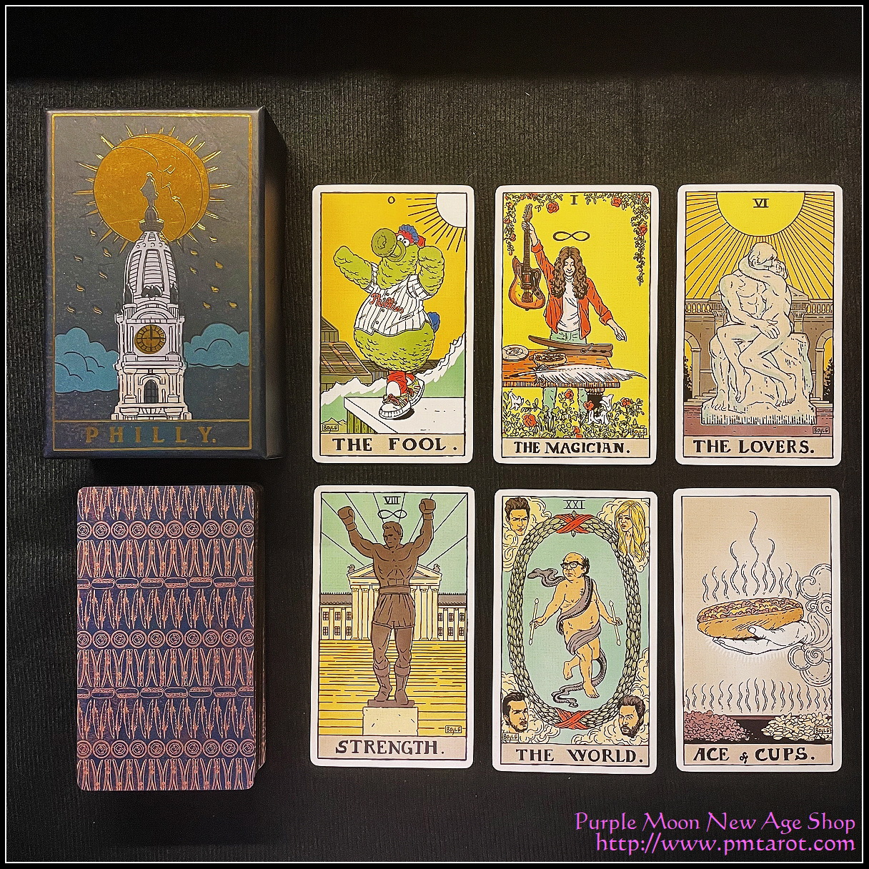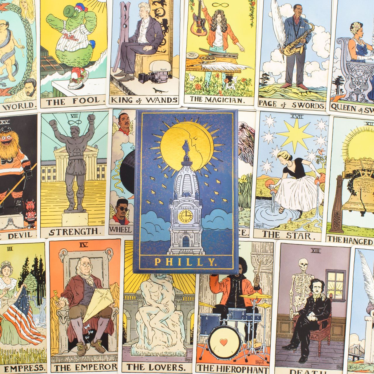 這個設計精美、詼諧的費城主題塔羅牌有 78 張牌,描繪了深受注目的費城弊端。當地藝術家 James Boyle 最初受託為雜誌描繪一個關於塔羅牌的故事,他創作的 3 張費城主題牌大獲成功,他將它們變成了一副完整的塔羅牌!該套牌隨附 Gina Tomaine 演繹 James 原創圖像的使用指南!這套卡牌包裝精美,印有閃亮的金色邊緣和啞光 UV 飾面,是精美的禮物及紀念品,看起來也令人倍感驚嘆。