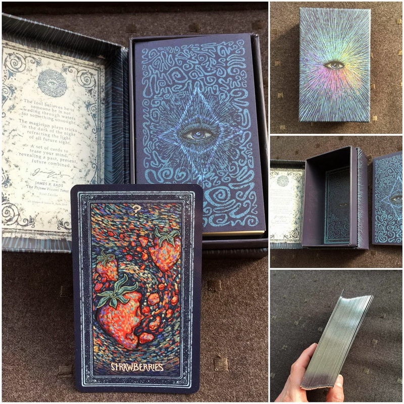 The first edition Prisma Visions Tarot 79 card deck with a 100 page guidebook in a flip top box.