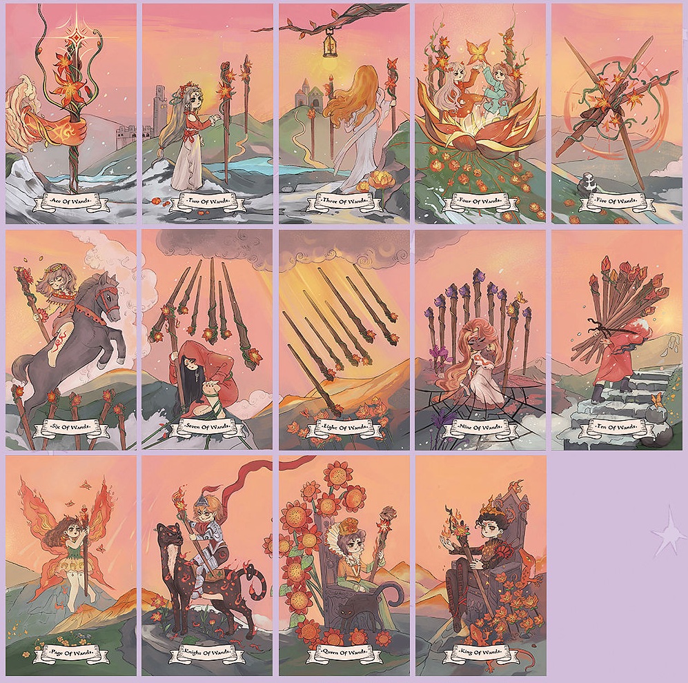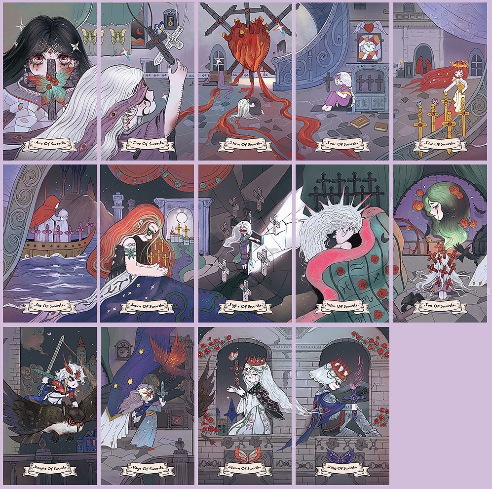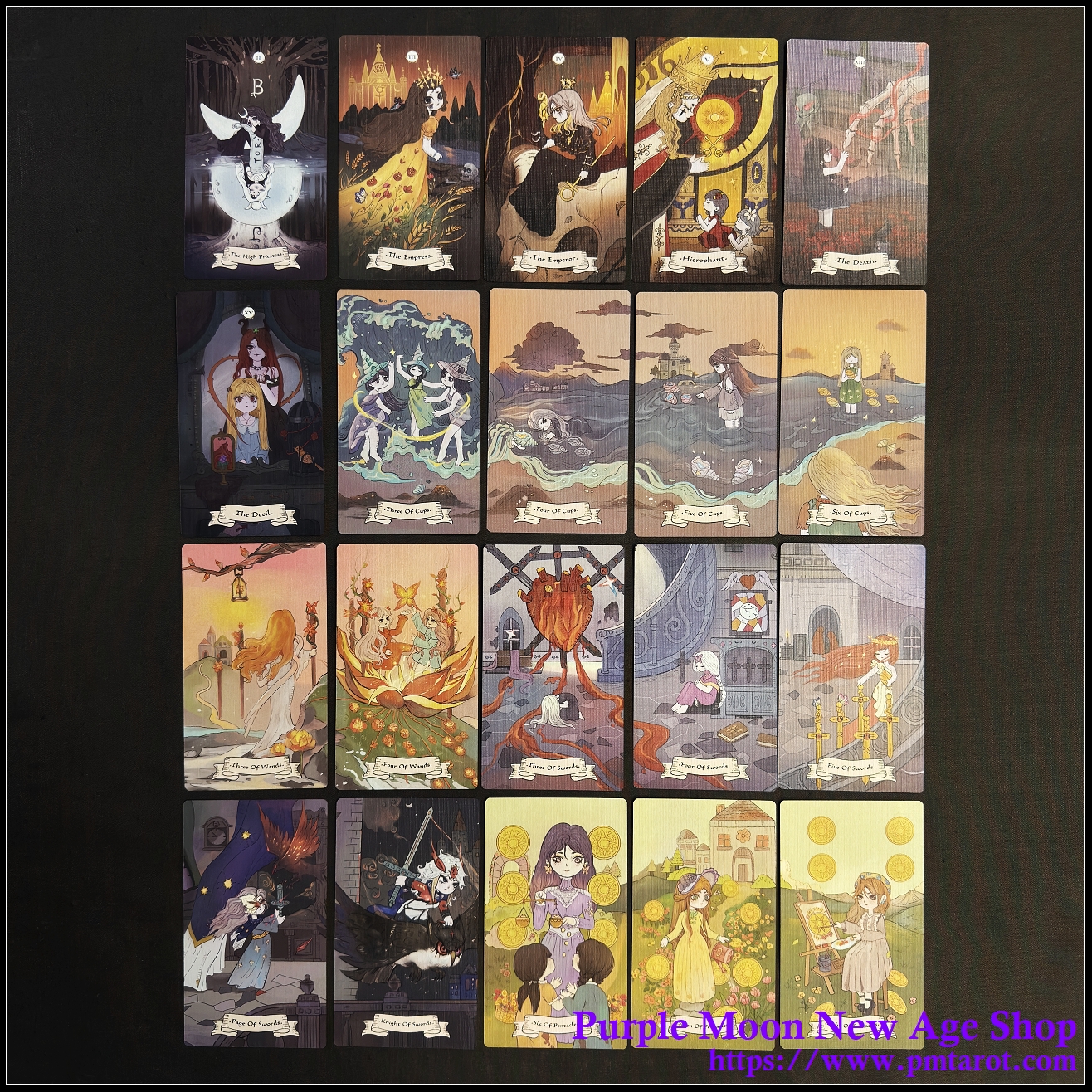 這是一套激勵人生成長,突破自我為主題的可愛蘿莉略帶暗黑反差風格的塔羅牌,此作品也是我們對於新風格和新主題系列的一種勇敢嘗試,每張從最開始的想法-到線稿到-精細刻畫也都注入了我們的新的感覺-宿命感,期待挑戰