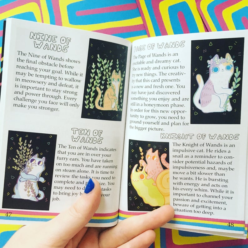 - 4 x 6 FULL COLOR Guidebook that includes fun card meanings, spreads, The Weird Cat Zodiac, sketches, AND MORE!