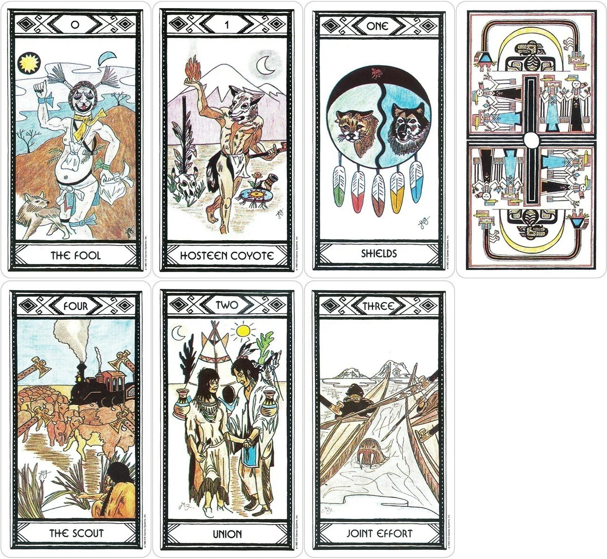 這些牌卡由各種美洲土著部落提供,包括阿帕奇、阿拉帕霍、切羅基、夏延、奇佩瓦、科曼奇、霍皮、休倫、因紐特人、易洛魁人、基奧瓦、納瓦霍、帕帕戈、皮馬、普韋布洛、肖尼、蘇和亞奎。這套不局限於對傳統插圖的標準解讀,而是體現美洲高山族的精神和意義管道。