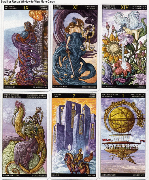 一個充滿想像及幻想的世界,沒有限制或預先設定的路讓你跟著走,只有魔法及力量的世界。牌中的世界只有自己的規律,有自己的文化、歷史背景及將來。傳統的塔羅圖案及結構會以全新的美好的形式在牌中顯現。